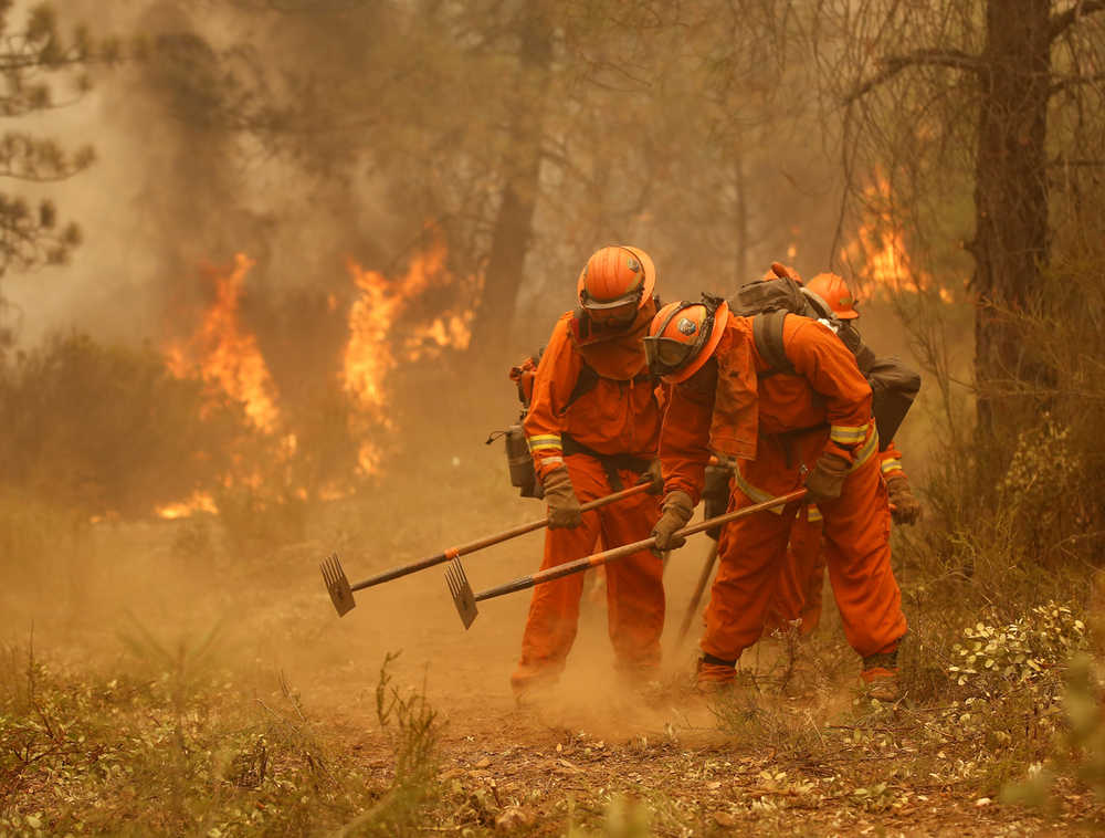 Inmate firefighters are housed in 43 unfenced, minimum-security camps scattered across the state. They are guarded by a few correctional officers but while fighting fires are overseen only by unarmed CalFire captains who direct the inmates as they use hand tools to chew through brush and timberland to create firebreaks to stop advancing flames.