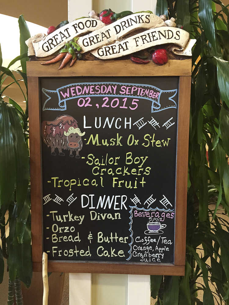 This Sept. 2 photo shows a lunch and dinner menu at a long-term senior care facility in Kotzebue.