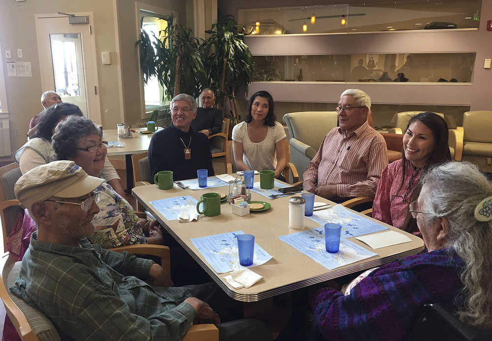 This Sept. 2 photo shows diners at a long-term senior care facility in Kotzebue. Now that the long-term senior care facility in Kotzebue just began incorporating traditional foods into the regular menu, its Alaska Native residents no longer have to just wait for monthly family potlucks to enjoy the taste of the subsistence foods they grew up with.