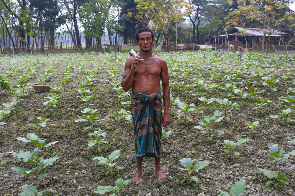 In this Nov. 17 photo, 36-year-old Amjad Miyah stands for a photograph in a field in the island district of Bhola,  Bangladesh.