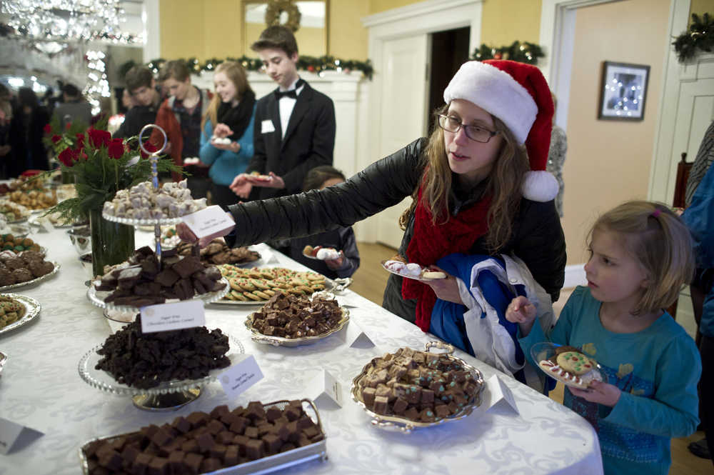 Lauren Sill watches has her daughter, Maggie, 4, select a cookie at the Governor's Open House on Tuesday.