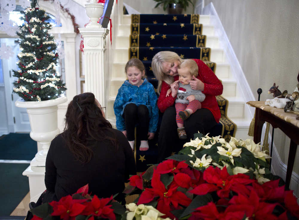 First Lady Donna Walker spends time with her grandchildren, Walker Linderman, 11 months, and Mera Hobson, 7, as they wait for the doors to open for the Governor's Open House on Tuesday.