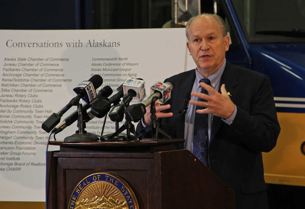 Gov. Bill Walker presents his fiscal year 2017 fiscal plan on Wednesday, Dec. 9, 2015 in Anchorage.