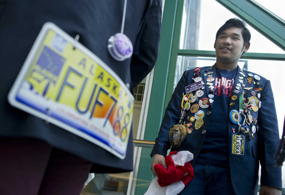 Marcellin Niset of Belgium, 17, sported a jacket covered in pins. He came to the U.S. with a collection of them, and then exchanges them for Alaska or U.S. ones. On the back of his jacket, he had even attached an old Alaskan license plate and a yo-yo.