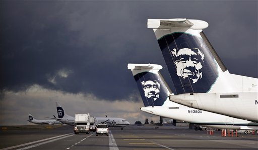 Alaska Airlines jets line a terminal as other plans move toward them on arrival Wednesday, Dec. 16, 2015, at Seattle-Tacoma International Airport, in SeaTac, Wash. Boeing Co., Alaska Airlines and the Port of Seattle announced Wednesday that they are partnering on a $250,000 study to explore how to bring more aviation biofuel to airplanes at Seattle-Tacoma International Airport. Executives for the companies and port signed an agreement, saying the study will help stimulate production of alternatives to conventional jet fuel. They say the longer term plan is to incorporate more biofuel into the airport’s fuel farm, which is used by all 26 airlines.
