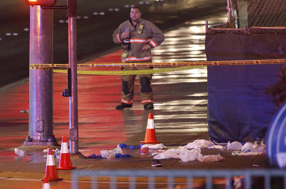 Joel Ortega, 31, of Redlands, California, said he and his wife, Carla, were visiting for the weekend and found themselves blocked from walking on the sidewalk toward the Paris hotel. They could see police investigating about a block away from the crash.