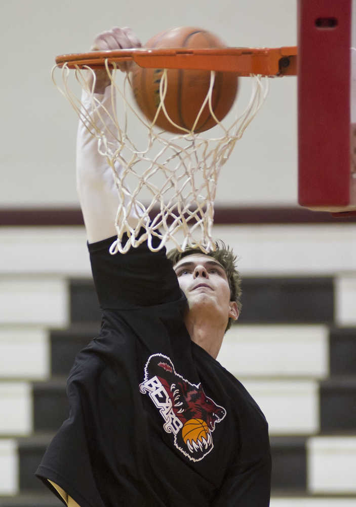 Juneau-Douglas' Bryce Swofford puts in his final attempt to win the dunking contest at the Capital City Classic at JDHS on Sunday. Other winners included Caitlin Pusich and Molo Maka, both of JDHS, in the free throw competitions. Chugiak's Nicole Pickney and Kent Lake's Michael Alar won their respective three-point contests.