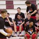 Member of the Juneau-Douglas High School boys basketball team react to a dunk by teammate Bryce Swofford during the ducking contest at the Capital City Classic at JDHS on Sunday. Swofford won the event. Other winners included Caitlin Pusich and Molo Maka, both of JDHS, in the free throw competitions. Chugiak's Nicole Pickney and Kent Lake's Michael Alar won their respective three-point contests.
