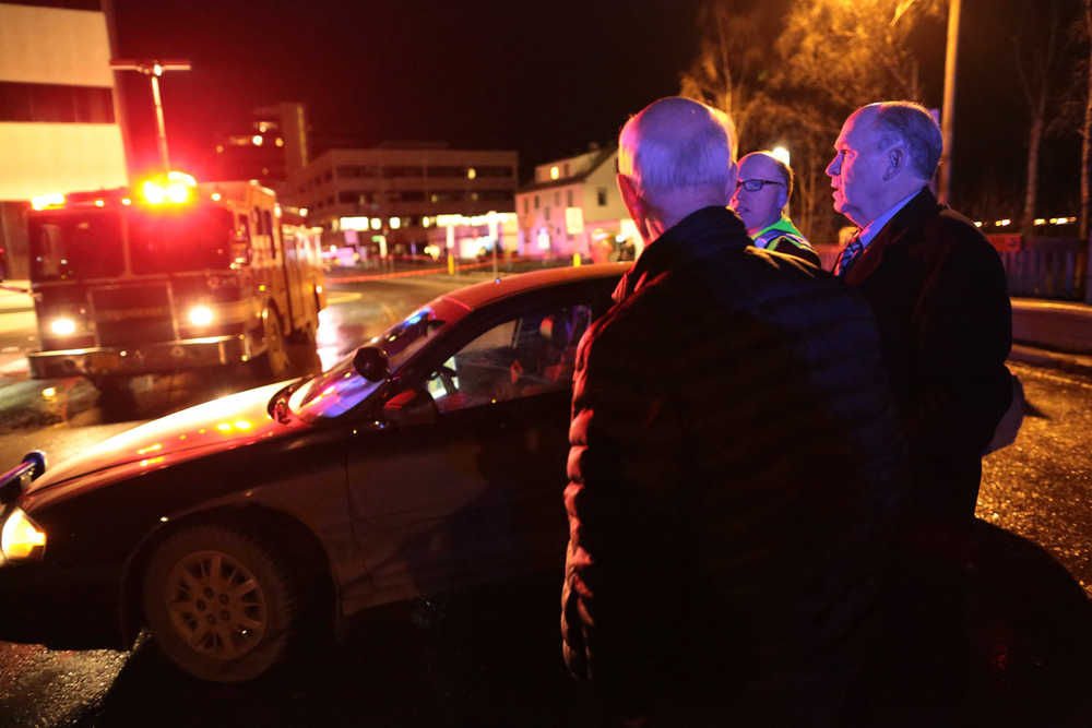 Alaska Gov. Bill Walker was among those checking out the scene Tuesday. Because one of the buildings houses state workers, Walker said he wanted to “find out what’s going on.”