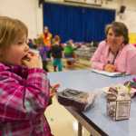 At the same table, 8-year-old Evelyn Wiegers said, “I only like regular potatoes.” Another girl pulled back the plastic covering the potatoes and announced, “This is so gross.”