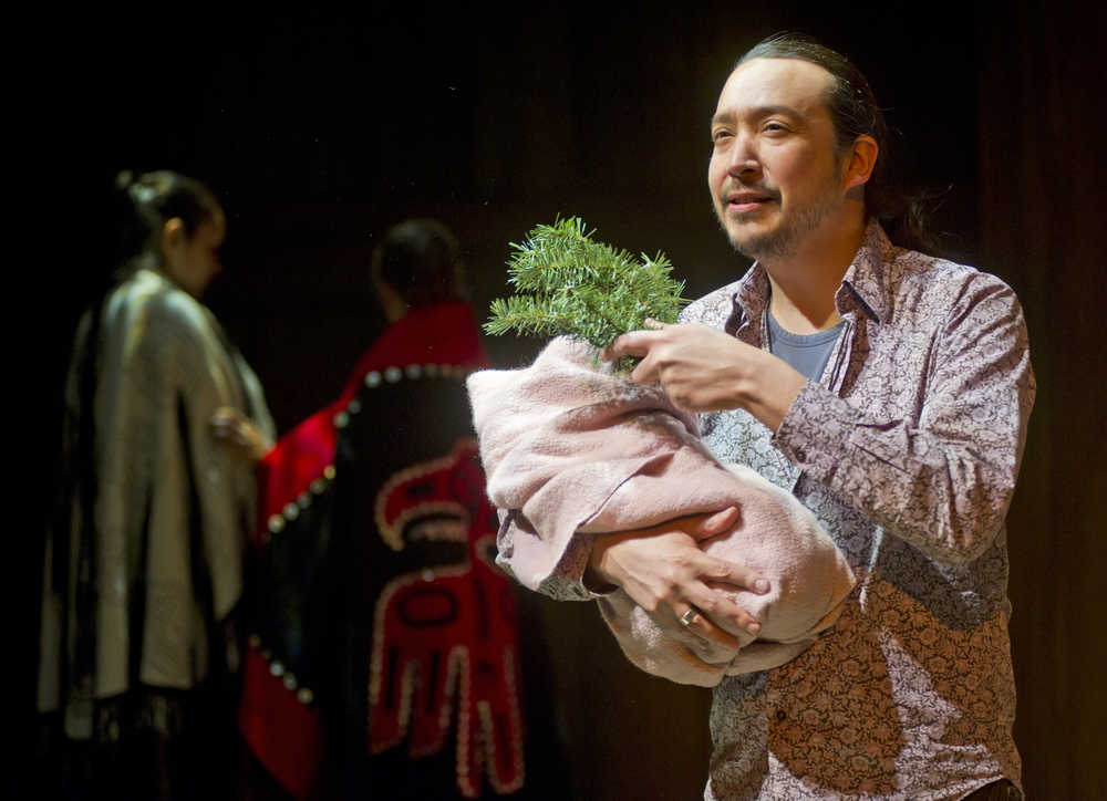 Starbard’s careful use of her cultural heritage is one of the play’s greatest strengths. The play is not really “about” Tlingit culture. That is, it is not intended to give anyone a glimpse into the way life really was for Tlingit people in the late 19th century. Rather, a singular Tlingit clan becomes the form through which a drama of truly universal caliber unfolds, posing questions about responsibility, justice, trans-generational trauma, and human agency which are absolutely inseparable from our current social conditions. With this, Starbard stages something that I don’t believe our community as a whole has come to terms with: the Tlingit culture, language, and institutions are more than capable of articulating sophisticated and timely responses to the challenges faced in the 21st century.