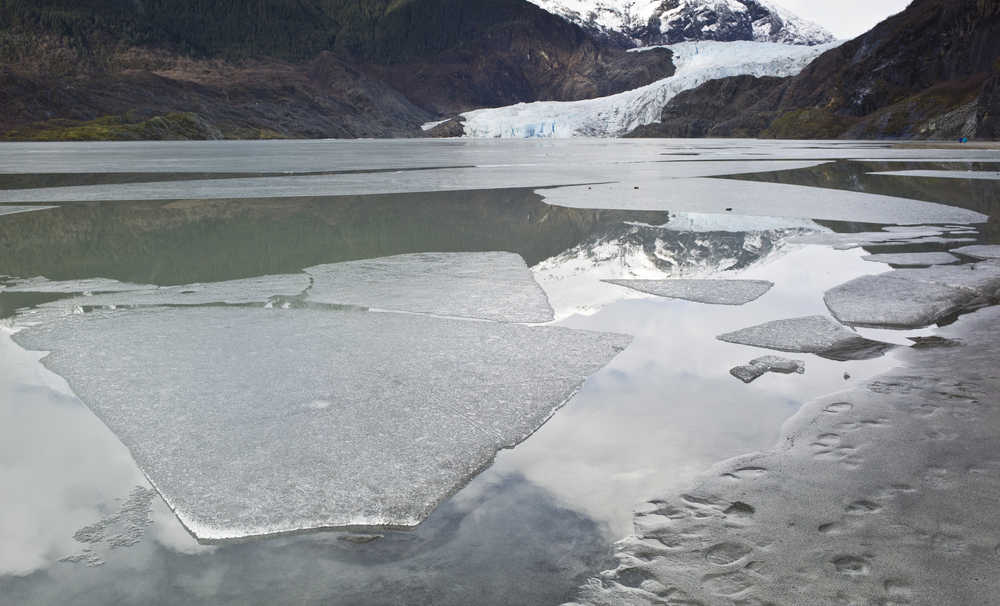 Prolonged warmer weather is causing Mendenhall Lake to break up sooner than usual. Tuesday is expected to be mostly cloudy with highs around 38. North wind 10 to 15 mph.