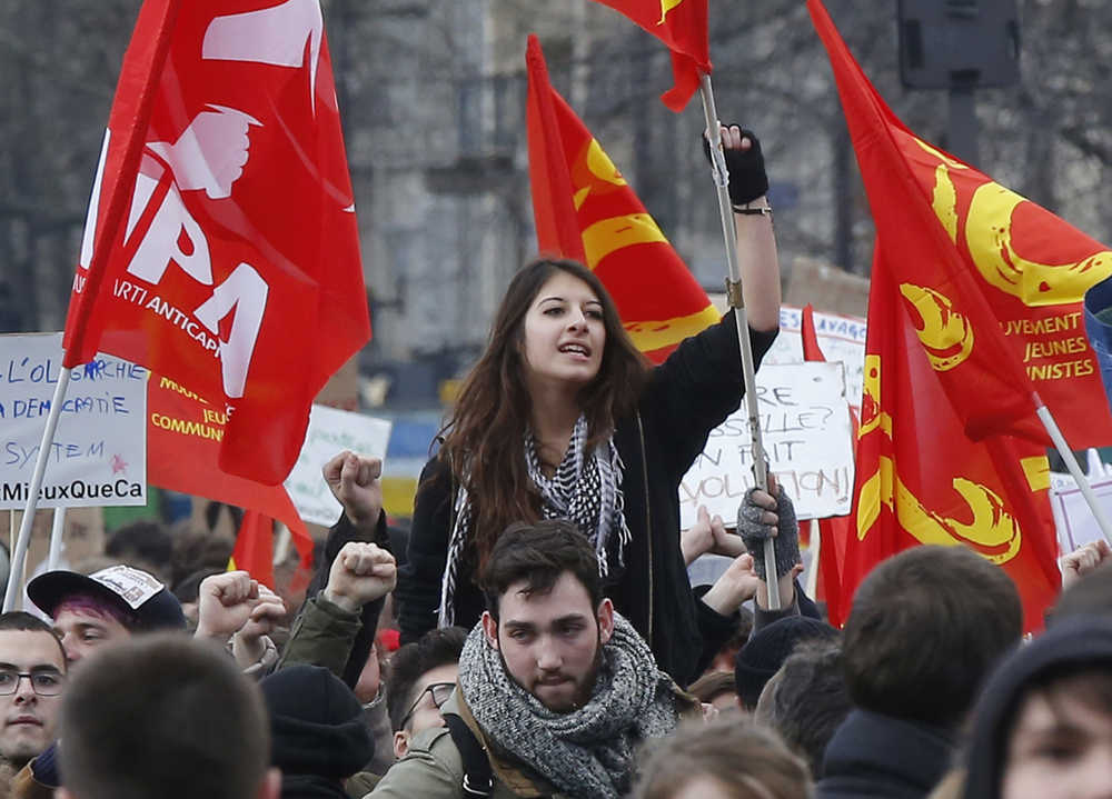 “This law is just aiming at making layoffs easier for companies,” he told The Associated Press at a big gathering on Paris’ Place de la Republique.