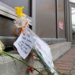 Flowers and a note are left outside the main entrance to the Dimond Courthouse on Tuesday. Miranda Ellen Davison, 34, shot and killed herself at the location on Monday.