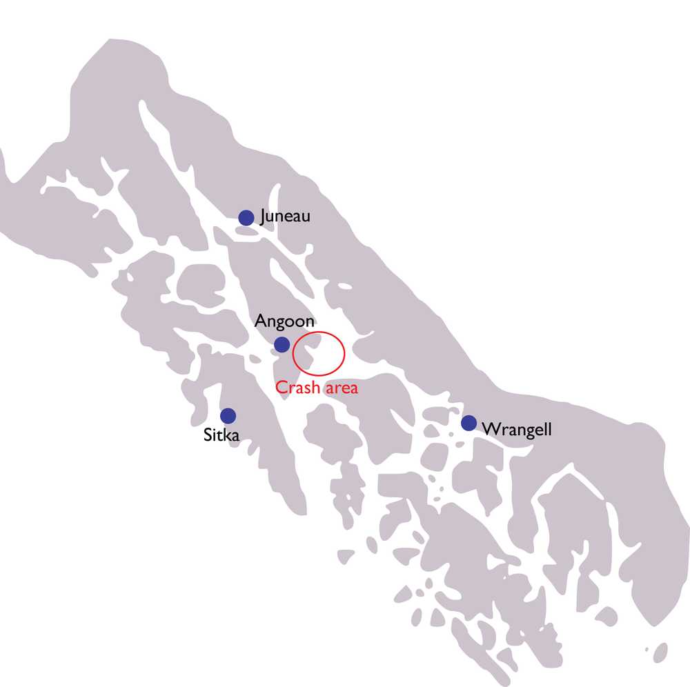 National Weather Service has a weather sensor at the Five Finger Lighthouse, about 25 miles east of the crash area. Meteorologist intern David Levin said surface weather around 9:30 a.m. Friday included a 3000-foot ceiling with light rain and a south wind about 10 MPH. He added that a wind shift with a front could have crossed over Admiralty Island around that time.
