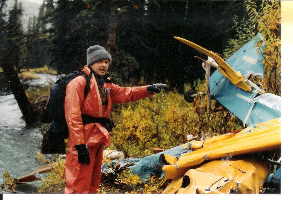 George Kobelnyk is shown during his younger years as a National Transportation Safety Board air safety inspector at an unidentified crash site.