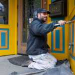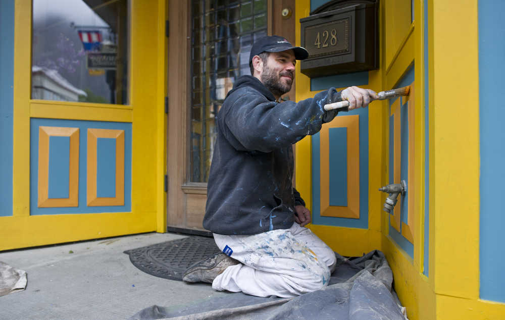 Woody Collins touches up the paint on the Effy Jewelers on South Franklin Street on Tuesday. The first cruise ship of the season arrives on Saturday, April 30.