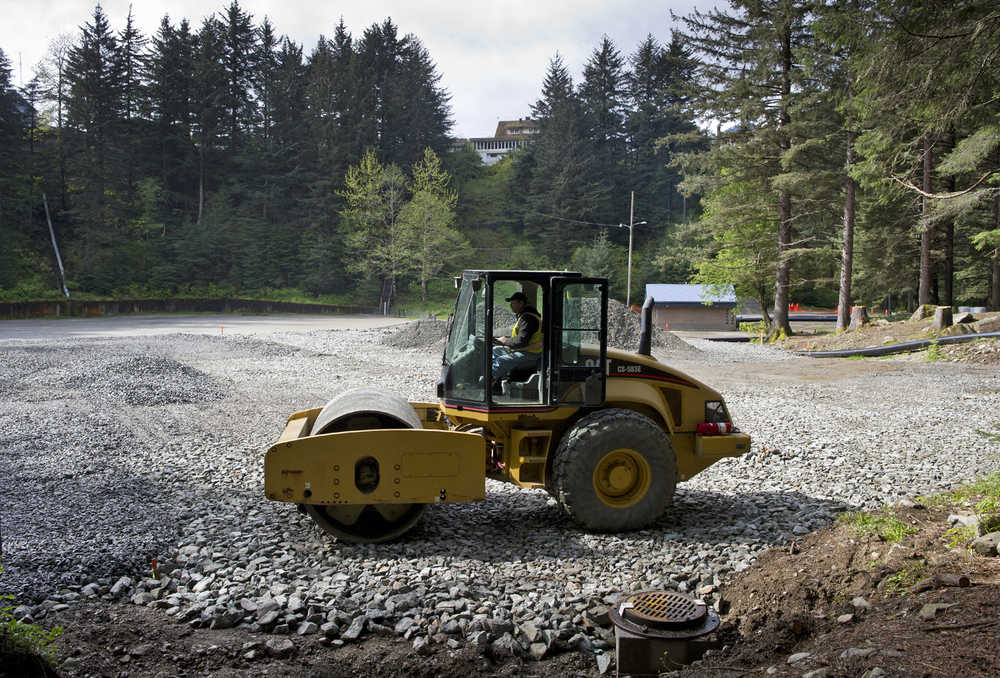A foundation is compacted for an area to hold new tennis courts in Cope Park on Wednesday. The park is closed while the area is being remodeled with play equipment and a new picnic area. A new water main running through the park is also being installed.