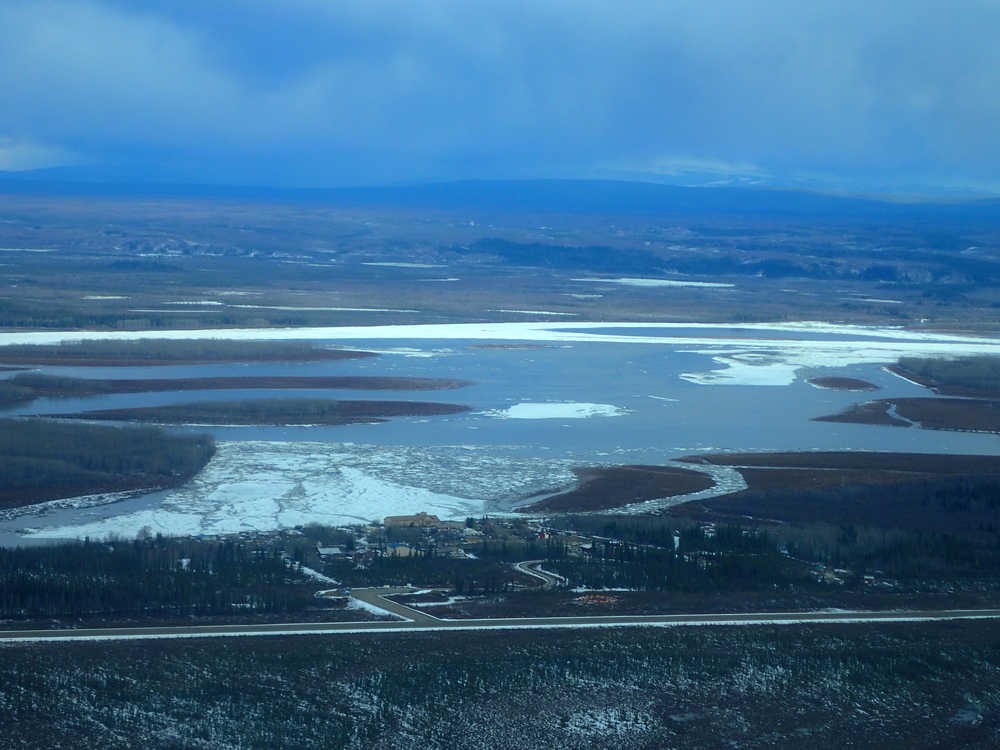 CIRCLE — As the pilot of a chartered Cessna 206 curved in for a landing above the Yukon River, his passengers squinted at white river ice that clung to the south bank near town. Chocolate brown open water filled river channels both upstream and downstream of the ice.