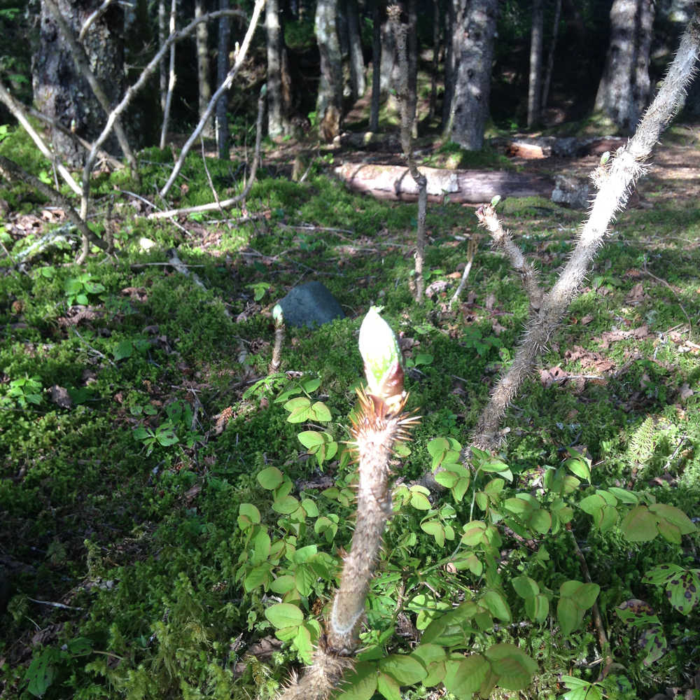 In the lower areas near sea level, devil’s club shoots are probably past prime this year. You’ll need to go up in elevation to find the ones that are just emerging. Harvest when they are one or two inches. When they get bigger, the leaf begins to unfurl. The spikes that are found on the leaf become harder when that happens. If you’ve ever had a devil’s club spine poke you, you can understand the desire to not want to eat one.