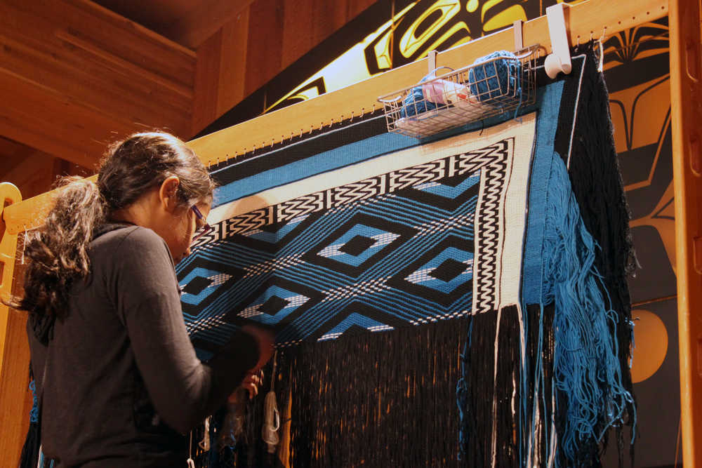 Whenever Juneau weaver Shgen George travels, her loom goes with her. She transports the large portable loom in a ski bag, advice she got from Clarissa Rizal.