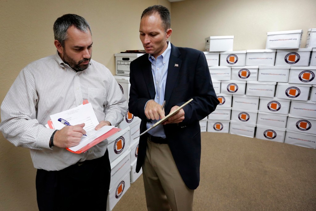 Representatives of the Arizona Secretary of State’s Office began inspecting dozens of boxes with signed petitions collected by the Campaign to Regulate Marijuana Like Alcohol.
