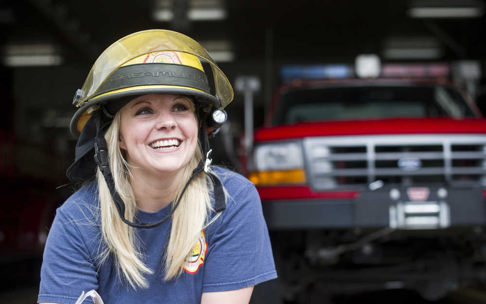 That obligation to “serve and protect” is something Asplund lives with quite literally. She is one of three live-in volunteers at the Douglas fire station who, in exchange for free housing, agree to standby a couple nights of the week to ensure that a first responder is always nearby to assist the fire department’s career firefighting staff. Two other volunteer stations (in Tee Harbor and Auke Bay) are set up the same way. Live-in volunteers are rarely all at the station at the same time because they each have different day jobs and are assigned different nightshifts.