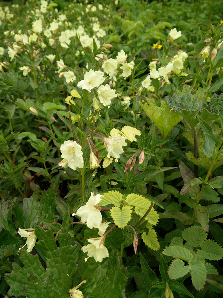 Just on the other side of Cropley Lake, in a wet area, is a stand of pale yellow flowers. This is a species of fireweed called yellow fireweed or sometimes yellow willowherb (Epilobium luteum). The familiar pink flowers of the usual fireweed (formerly a species of Epilobium but now reclassified in a separate genus, Chamaenerion) are evident all over town, but the yellow one is much rarer. We’ve seen small numbers of this in only a few places around here. It can propagate vegetatively, so once a plant gets established from seed, it can spread locally if the habitat is suitable. (And by the way, why is the pollen of the pink fireweed sometimes blue-green?)