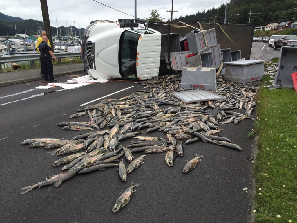“It was a medium-duty commercial truck. It was carrying a load of salmon,” Juneau Police Department Lt. David Campbell said by phone Monday.