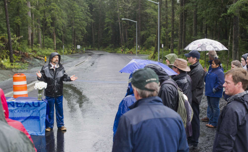Several city officials gathered at the intersection, located across from Dzantik’i Heeni Middle School, Wednesday afternoon to celebrate the opening of the recently completed Jackie Street. The cold continuous drizzle of rain did nothing to dull smiles or dampen spirits as several people spoke in memoriam of Jackie Renninger, who died of cancer 24 years ago.