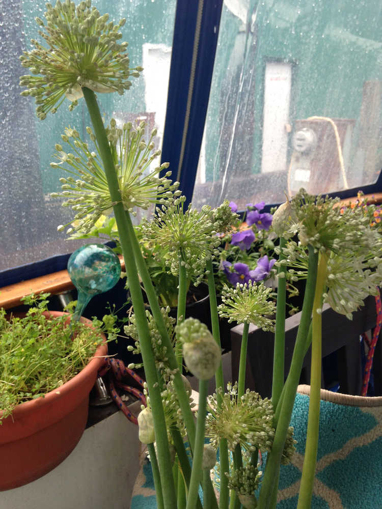 The flowering stalk of the shallot and the red onion are a bit like the scape. They have a milder flavor than what you will eventually harvest. The texture is different as well. Still, two for the work of one.