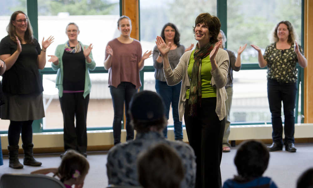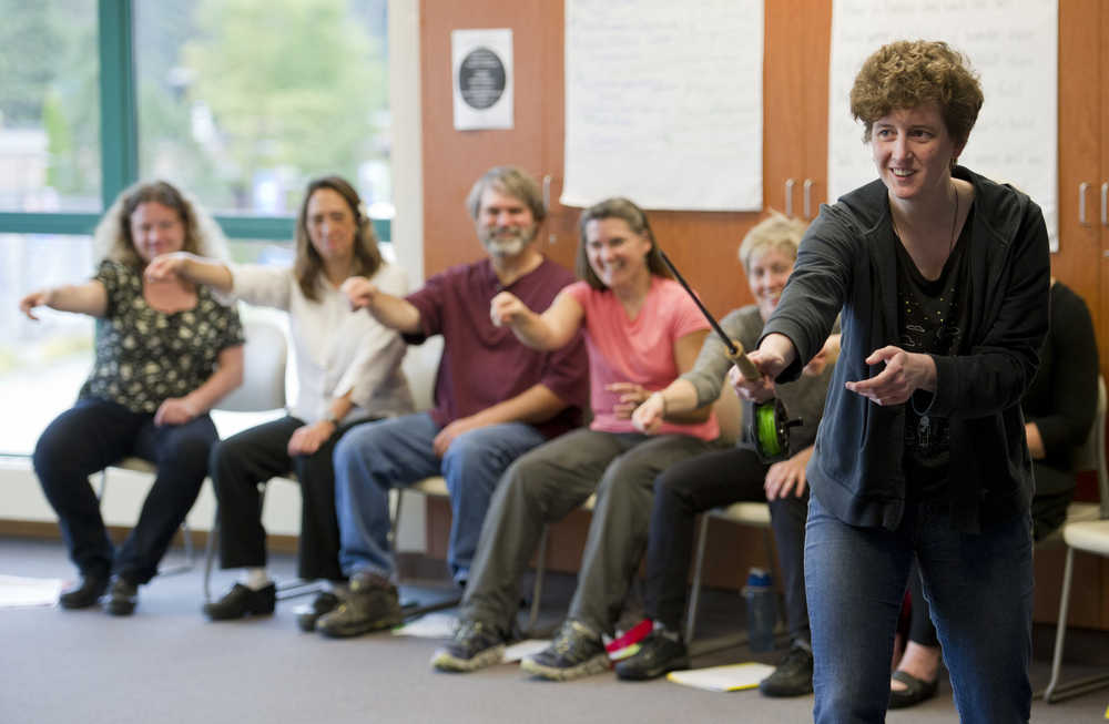 During Thursday’s event, Juneau teacher Kate Kroko demonstrated teaching in role by giving a sample lesson where she pretended to be a backwoods fly fisher. In her act, she taught students how to play the violin by comparing bow movements to casting.