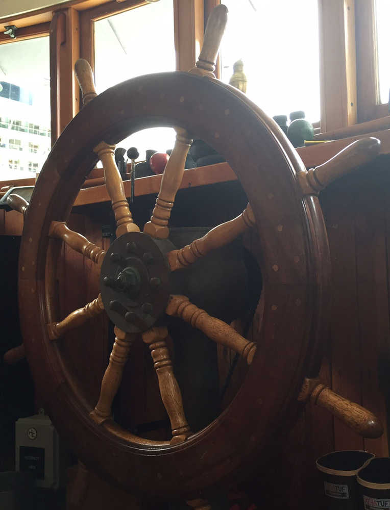 The wheel of the M/V Westward.