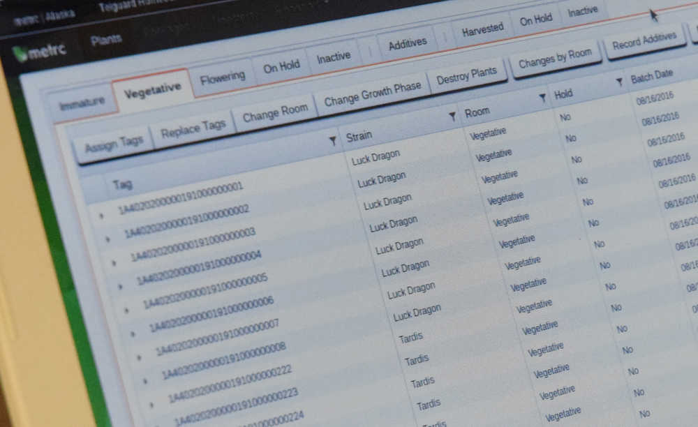 Alongside each of the plants in Rainforest Farms’ facility is a small blue identity tag. One of these tags adorns each of the thousands of legal cannabis plants now growing in Alaska. Each tag is entered into a computer database, and inspectors can track any individual plant from the time it is cloned to when it is separated from its buds and those are sold over the counter.
