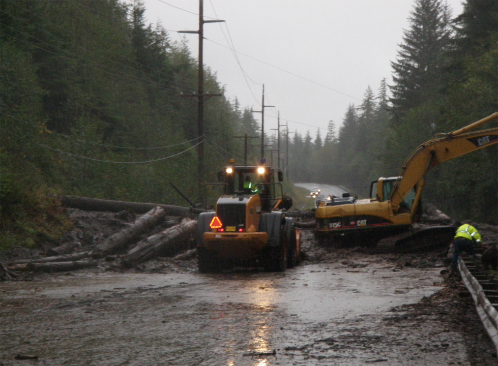 Crews worked to clear this landslide that blocked Mitkof Highway in September of 2009.