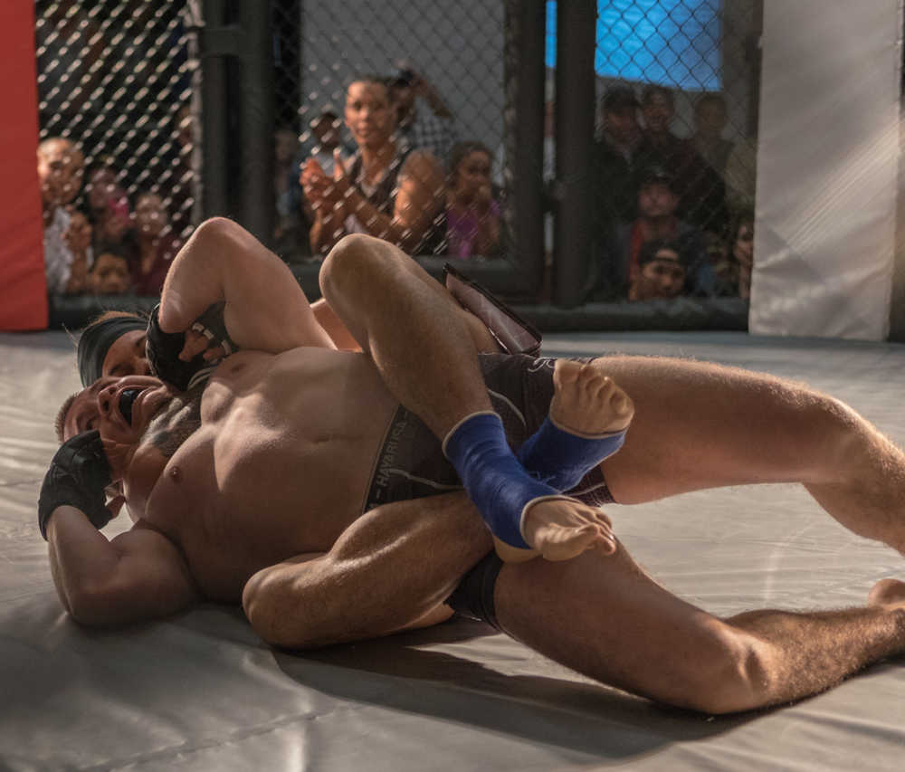 Nino Kafoa Maka puts local boy Zachary Oldaker in a submission hold in Friday nights Ak Beat Down Main Event fight at Elizabeth Peratrovich Hall.