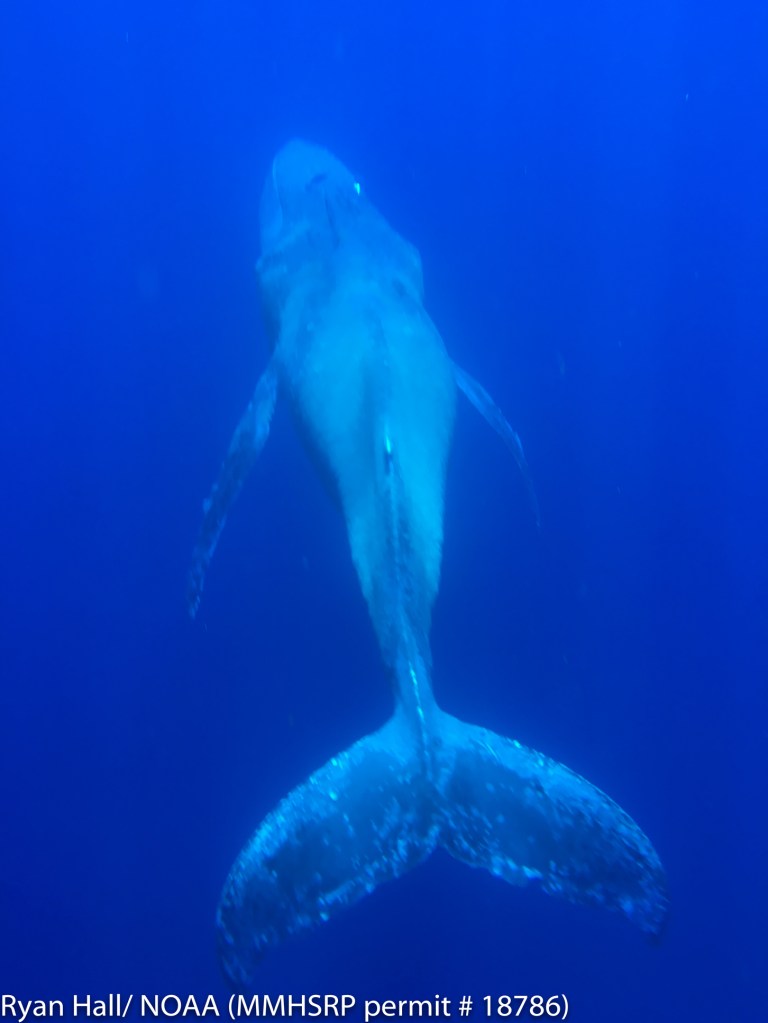 This image provided by NOAA shows a humpback whale sighted off Maui, Hawaii. Hawaiian Islands Humpback Whale National Marine Sanctuary Superintendent Malia Chow said Friday, Aug. 26, 2016, that the animal is emaciated and covered in whale lice. At least four sharks were following the whale. She says these are all indicators of a whale in distress.