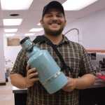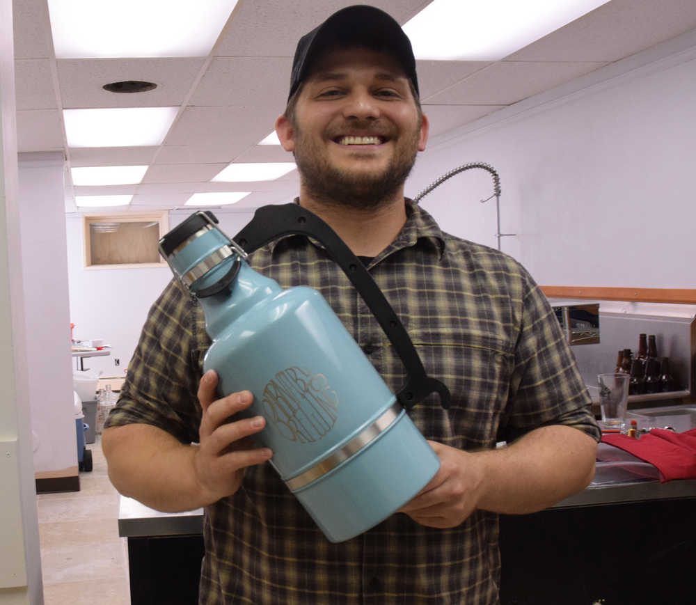 Brewer Matt Barnaby holds a growler emblazoned with the logo of his new business, Barnaby Brewing Co., which will hold an open house Saturday on North Franklin Street. The brewery is still seeking a federal license and will begin brewing beer early next year.