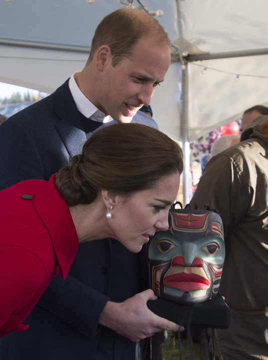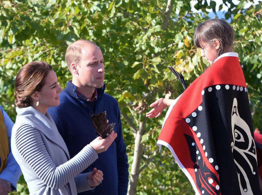 The royals also gathered with giggling children at the museum for a First Nations language lesson. The children sang a welcome song and pronounced the names of wolves, bears and rabbits in First Nations languages.