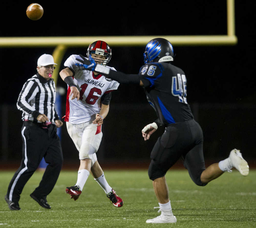 Mourning the loss of senior wide receiver and defensive back Ryan Mayhew, who tragically died Sept. 17, the Falcons beat Juneau-Douglas High School 37-0 in the last game of the season, preserving their undefeated Southeast Conference record and sending them to the state semifinals with a No. 1 seed.