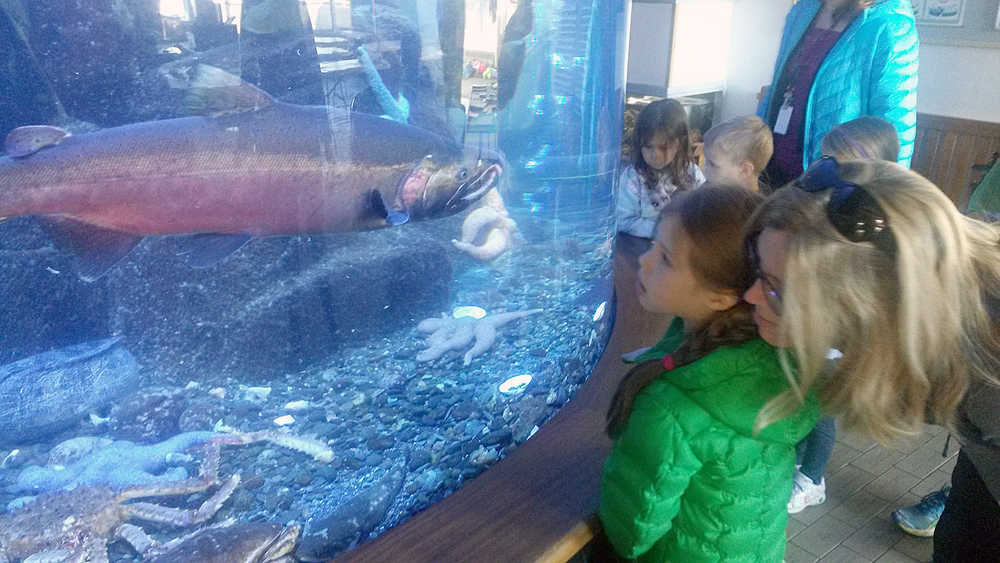 Vince Nizich, right, examines a starfish during a class field trip by Semra Deaner’s Auke Bay Elementary School kindergarten class to Douglas Island Pink and Chum salmon hatchery on Monday.