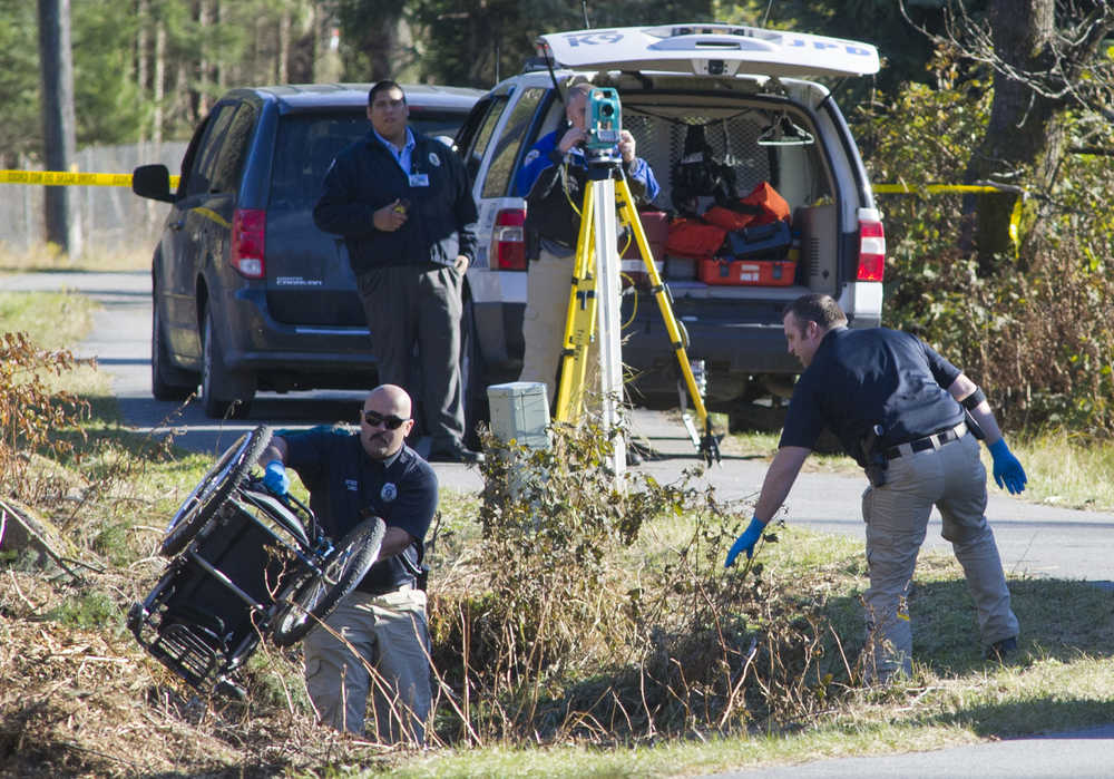 In the early afternoon, police and investigators wielded surveying equipment as they documented the scene then removed the wheelchair from a drainage ditch between the bike path and a chain link fence that separates the path from Teslin Street, a dead-end residential road.