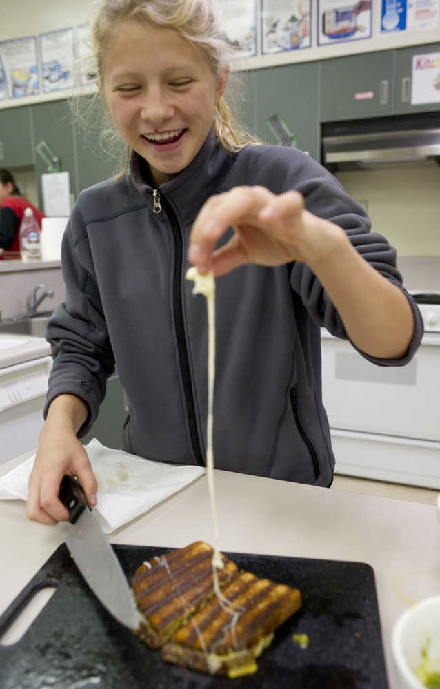 As seventh-grader Maile Quigley spread pesto on her brown bread, she said Life Skills was probably her favorite class, and out of anything the class has created so far, the Jambalaya recipe wins for best dish. She told the Empire she enjoys cooking with her family and likes to show her parents what’s she has learned to make at school. After the cheese turned gooey and the bread was bronzed, Quigley put the sandwich on her plate and then took a big bite. She nodded to herself in approval before going to join her classmates bent over their stitching.
