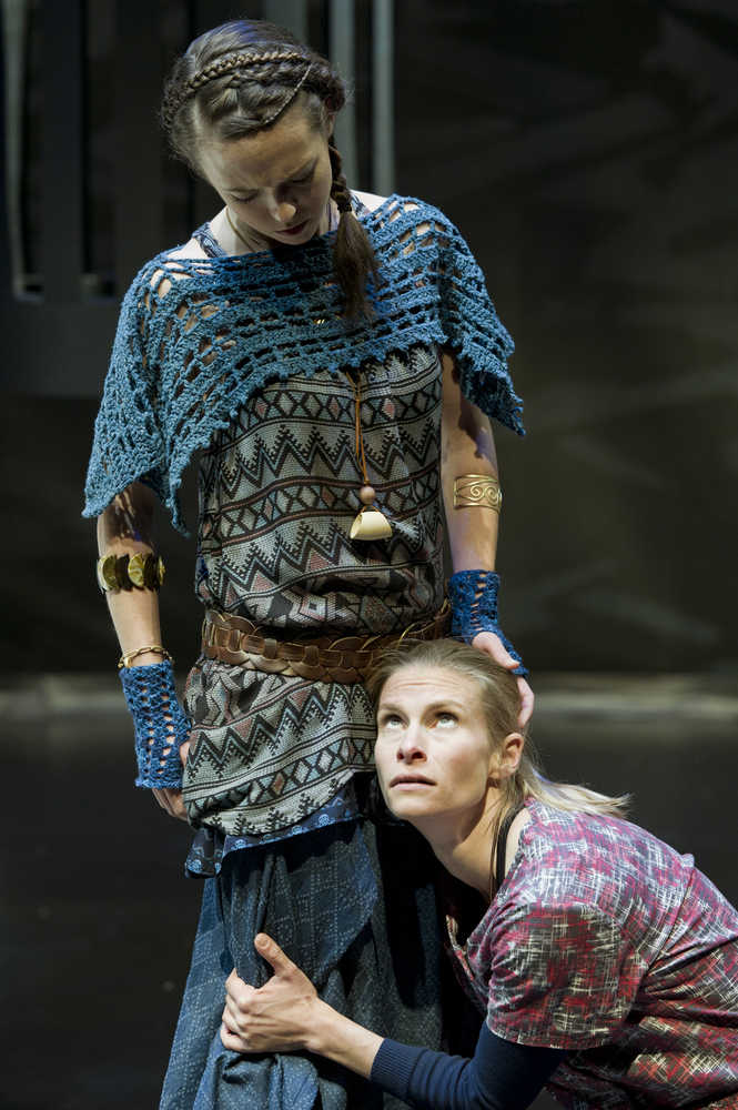 Actresses Cate Ross, top, and Shelley Virginia rehearse for Perseverance Theatre's production of "Not Medea."