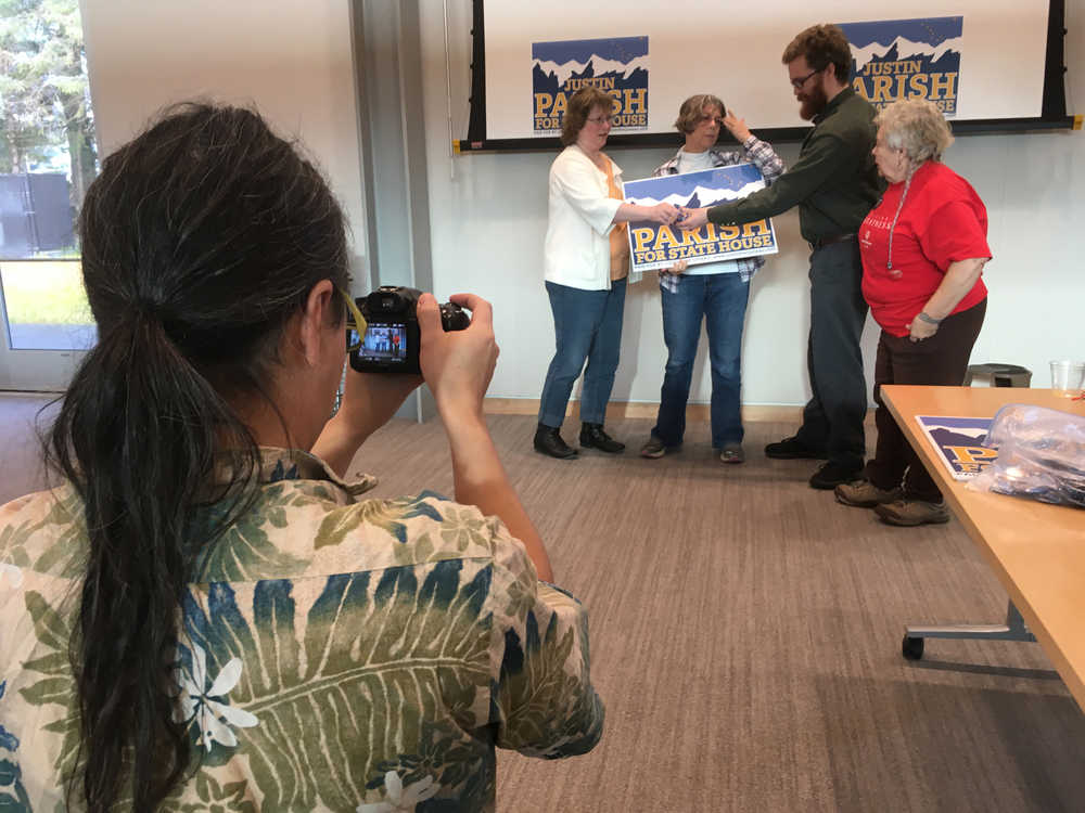 Each weekend during the campaign’s final month, Muñoz volunteers fortified themselves with breakfast here before trudging out to knock on every residential door in the district. On this, the final weekend, campaign manager Matthew Gruening paid for 30 breakfasts before heading across Glacier Highway to the Rie Muñoz Gallery, where Muñoz has her campaign headquarters in a back room.