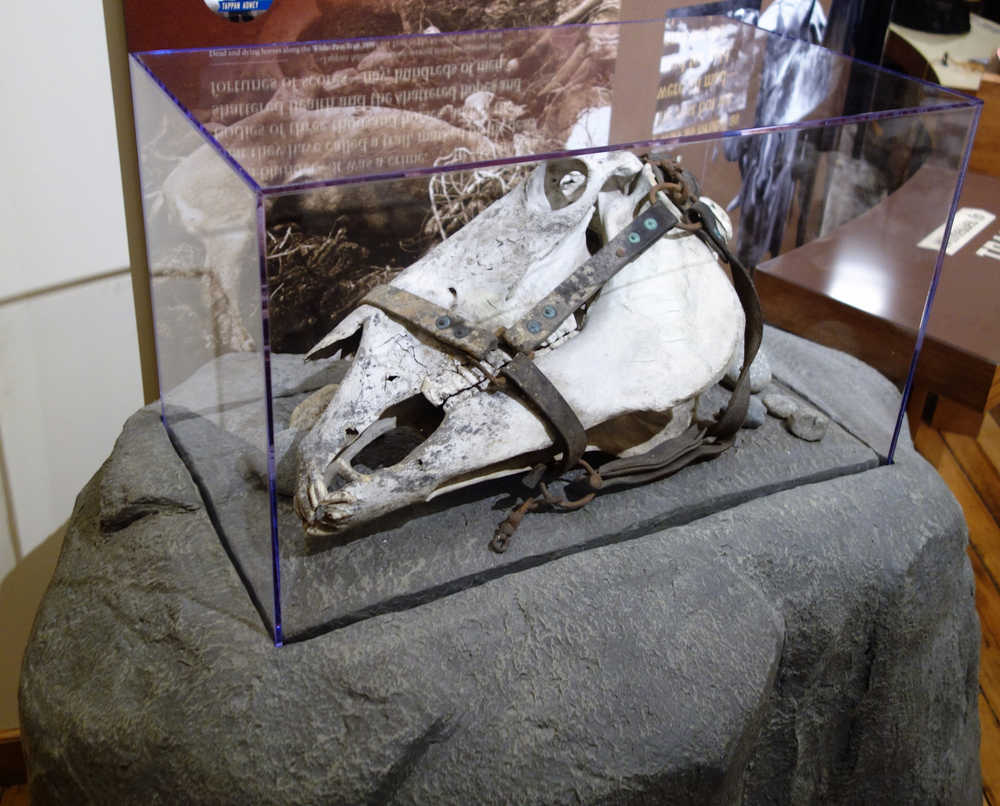 Most people didn’t strike it rich, and one of the displays that emphasizes that is a wheel of fortune. A person can spend the wheel and land on death, turning back on the trails, setting up shop in Skagway, working as a skilled packer, and more to emphasize the many paths diverging from striking gold.