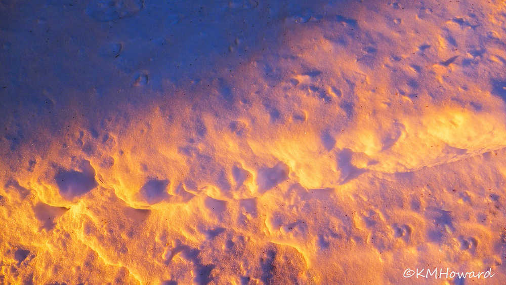 A colorful pile of snow at sunset.