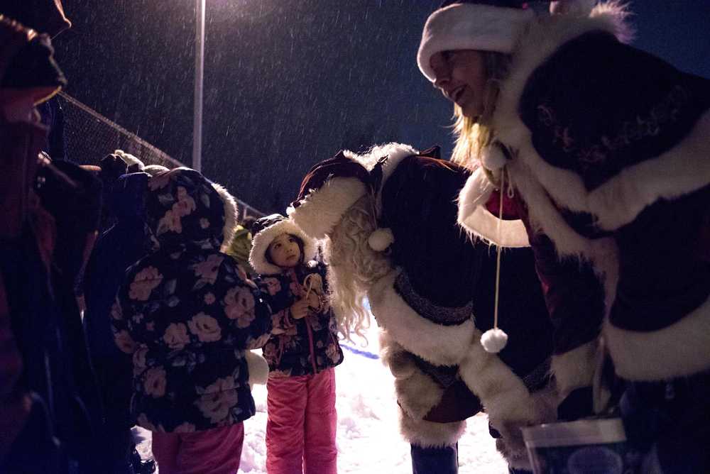 Bridget Bartlett, 6, reacts as she sees Santa Claus and Mrs. Claus riding a fire engine during Santa’s Annual Ride with Capital City Fire/Rescue in the Mendenhall Valley on Aspen Avenue on Dec. 17. CCFR volunteers handed out candy canes.