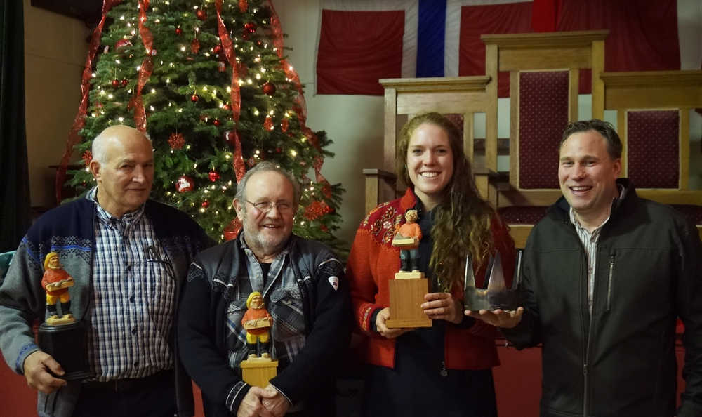 Eventually Glo Wollen made her way to the front of the hall, getting the crowd’s attention as she prepared to announce the winners. She thanked the volunteers who helped organize the event, led by Cynthia Mathisen, and extended a few special thanks to the crew of the Defiant, who caught the herring, and Icicle Seafoods, for allowing participants have their pick of the catch. Then finally, it was time. The 2016 winners were: