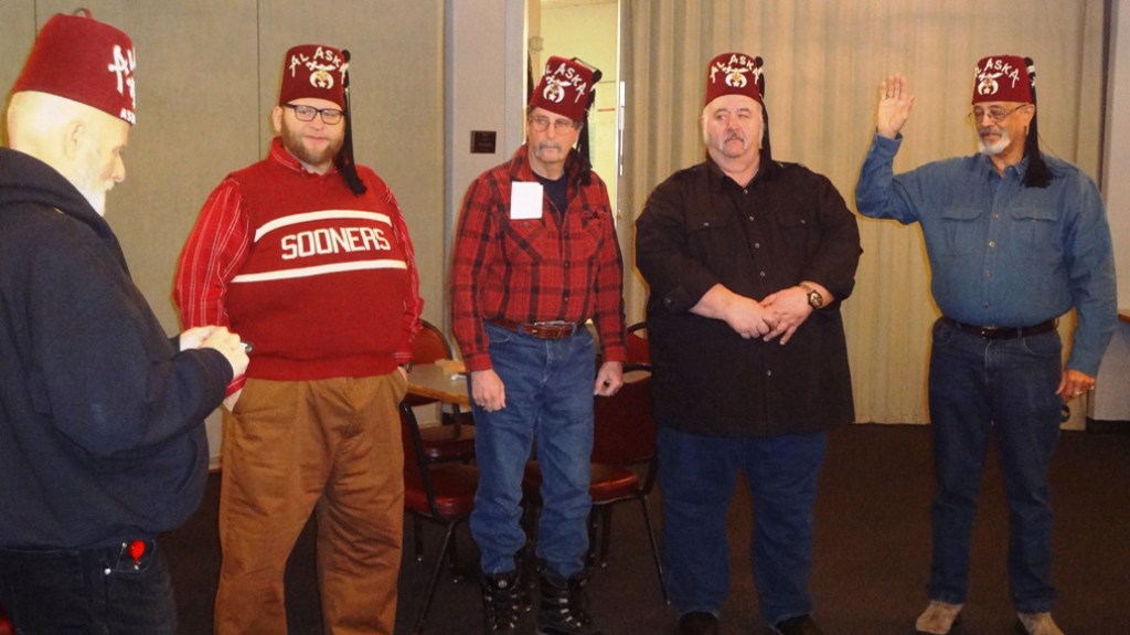 The Juneau-Douglas Shrine Club installed its 2017 officers in a Jan. 4, 2017 ceremony at the Juneau Moose Lodge. From left, they are: Chief Rabban Larry White, Installing Officer; Charles Ward, Secretary; Larry Fanning, 2nd Vice President; Craig Bumpus, 1st Vice President and Mer’chant Thompson, President. Not pictured is Jim Robinson, Treasurer.